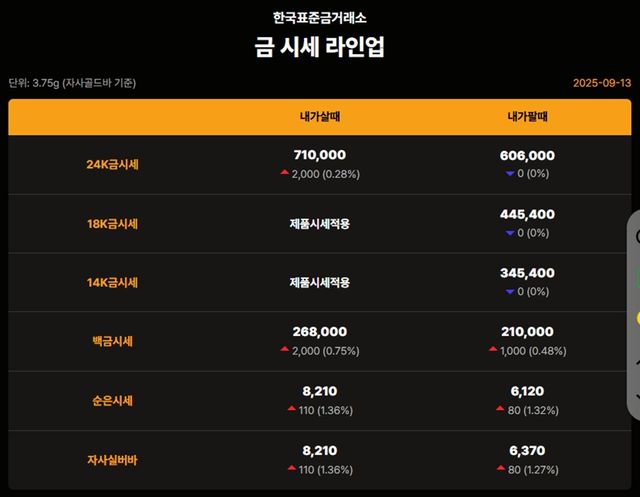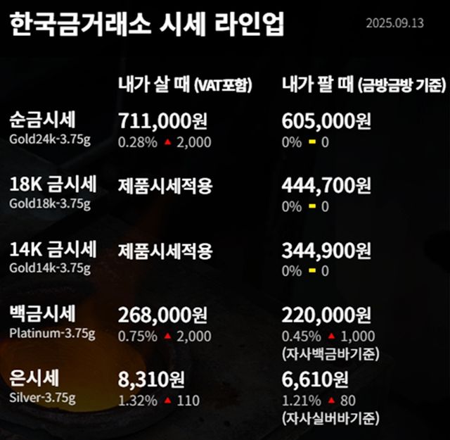 순금(24K) : 매입가 71만 1000원 / 매도가 60만 5000원