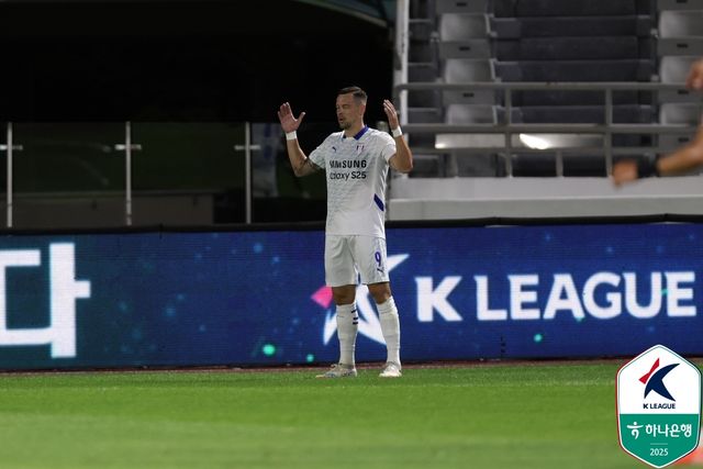 수원 삼성은 13일 목동종합운동장에서 열린 하나은행 K리그2 2025 29라운드에서 전반전 터진 일류첸코의 선제 결승포를 앞세워 서울 이랜드 FC를 1-0으로 꺾었다.