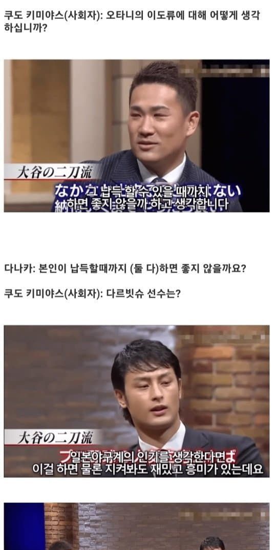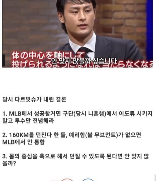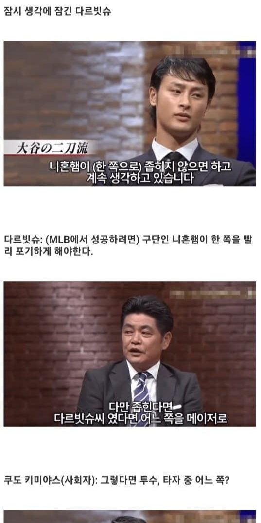 다르빗슈는 아얘 대놓고 부정적이였음 MLB에서 이도류는 말이 안된다고 타자 관두고 투수에 집중해야 된다고 함