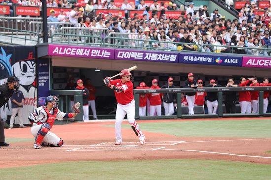 이후 손호영의 좌전안타와 전민재의 희생번트, 대타 박찬형의 볼넷과 도루로 2사 2, 3루 역전 찬스를 만들었고, 내야 압박 수비를 뚫는 황성빈의 좌중간 2타점 적시타가 나오면서 경기를 뒤집었다.