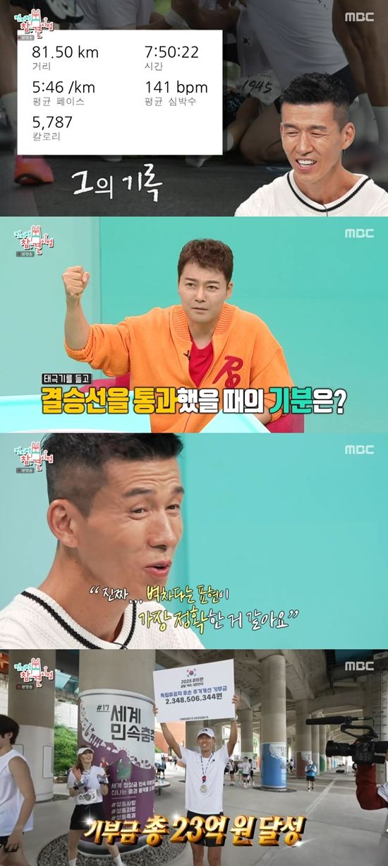 (엑스포츠뉴스 문채영 기자) '전참시'에서 션이 '815런'으로 23억 원 기부금을 달성했다.