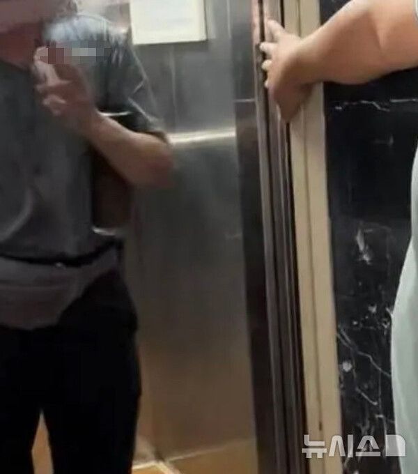 영상을 촬영한 주민은 "20분 넘게 아래층에서 기다려도 엘리베이터가 내려오지 않아 올라가 봤더니 엘리베이터 안에서 노인이 담배를 피우며 주민들과 다투고 있었다"고 당시 상황을 밝혔다.