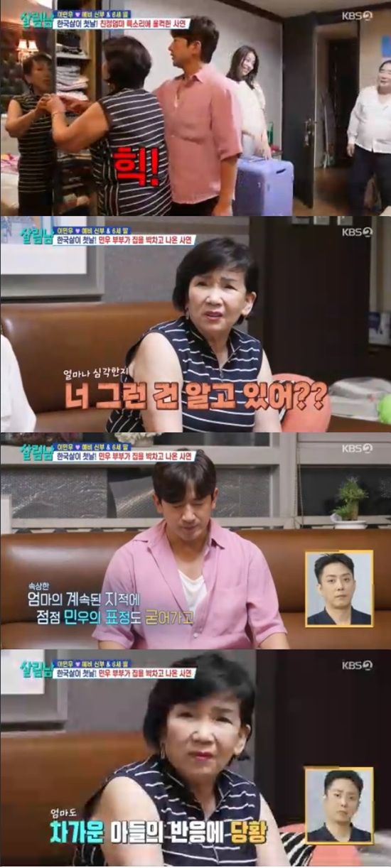 이민우 어머니는 하다못해 며느리와 손주의 짐을 넣을 공간도 없는 것을 확인하고는 아들에게 "며느리 보기가 민망하다"고 말했다.