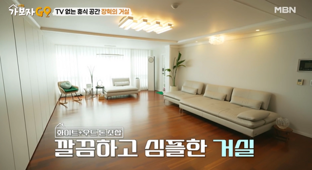 화이트톤으로 깔끔하게 정돈된 복도를 지나자, 넓은 거실이 등장했다. 홍현희가 “진짜 깔끔하다”고 하자 박준형은 “깔끔한 게 아니라 아무것도 없다. TV 어디 있냐”고 놀라워했다. 장혁은 “없다. TV가 있을 때 아기들이 계속 봐서 빼버렸다”고 답했다.