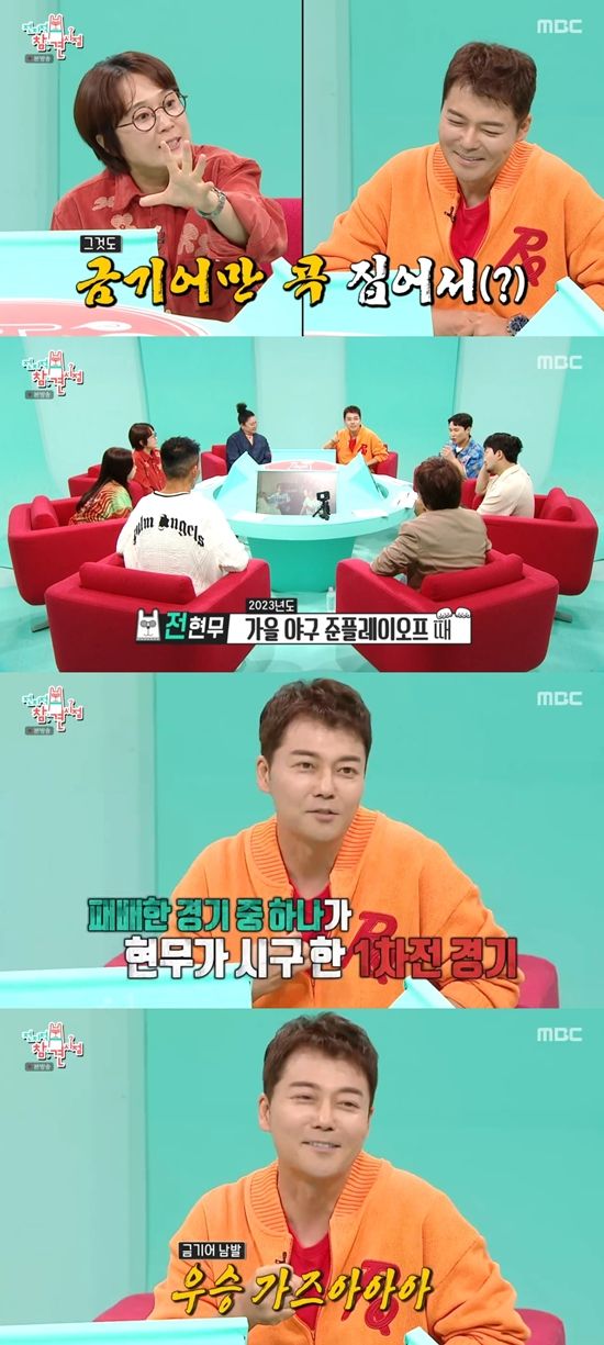 장내 아나운서의 설명을 들은 송은이는 전현무에게 "이 분야는 전현무 씨가 잘 알지 않냐? 금기어 남발하기 전문이지 않냐"라고 물었다. 전현무는 "가을 야구 준플레이오프 1차 전 때였다. 포스트시즌 때 계속 LG트윈스가 잘했는데 재가 시구한 경기에서 졌다. 찬물을 확 끼얹은 거다. 제가 '우승 가자'라고 했다"라며 당시를 회상했다.