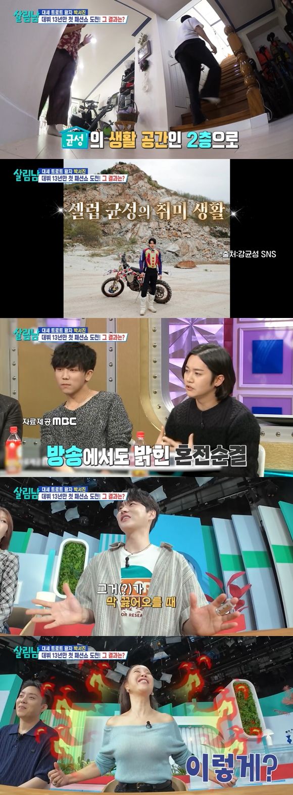 13일 오후 방송된 KBS2 '살림하는 남자들 시즌2'(이하 '살림남')에서 박서진은 서울패션위크 출격을 앞두고 워킹 팁을 전수받기 위해 개그맨 김용명과 함께 강균성의 집을 찾았다.