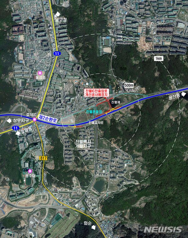 뉴시스 보도에 따르면, 14일 광주시종합건설본부 등에 따르면 최근 광주 남구 진월IC 공사구간에 교통불편 민원이 잇따르고 있다.