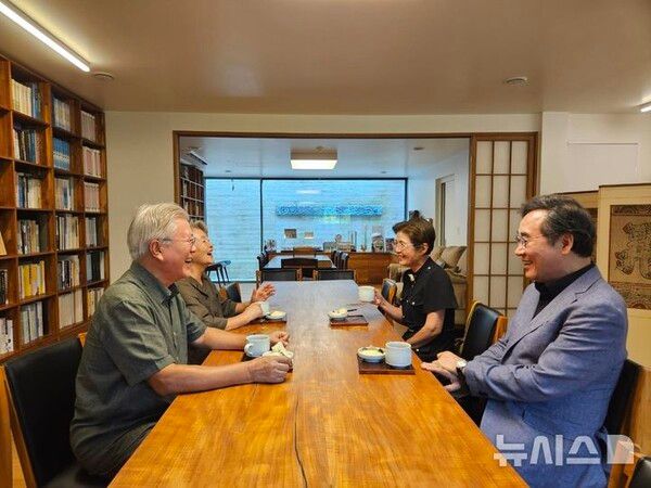 이 전 총리는 전날 SNS에 문재인 전 대통령 부부와 만나 차를 마시며 활짝 웃는 사진을 공개했다.