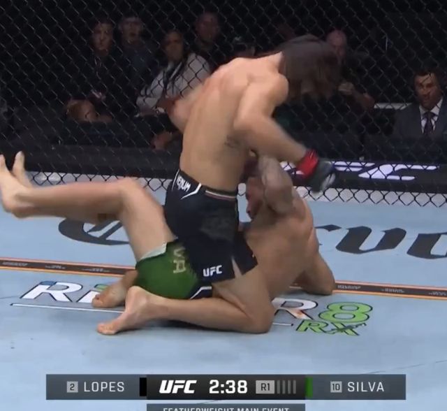 실바는 그라운드 지옥에서 벗어나기 위해 허우적거렸지만, 로페스는 계속해서 톱 포지션을 점유하고 펀치를 쏟았다.