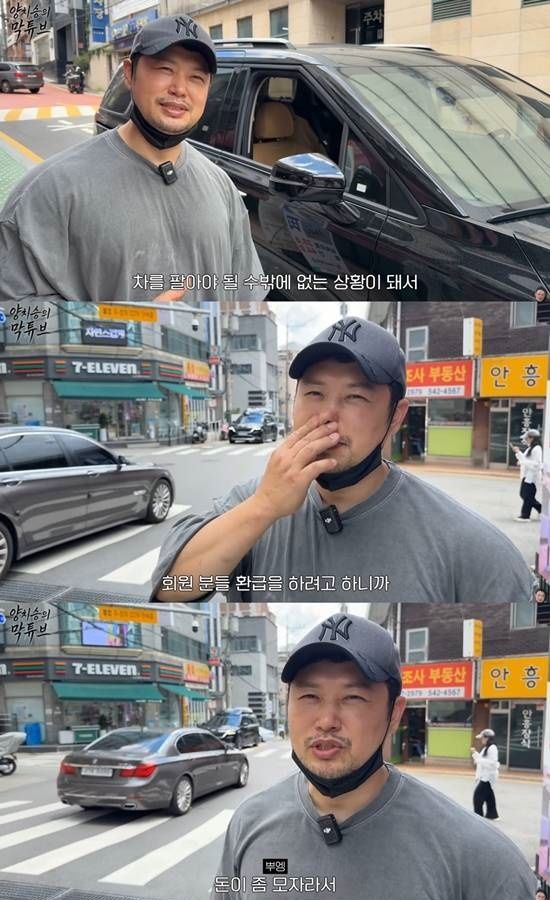 (엑스포츠뉴스 김유진 기자) 헬스 트레이너 양치승이 차를 팔아 헬스장 회원들에게 환급해 줄 돈을 마련하고 있다고 밝혔다.
