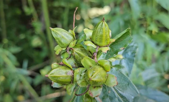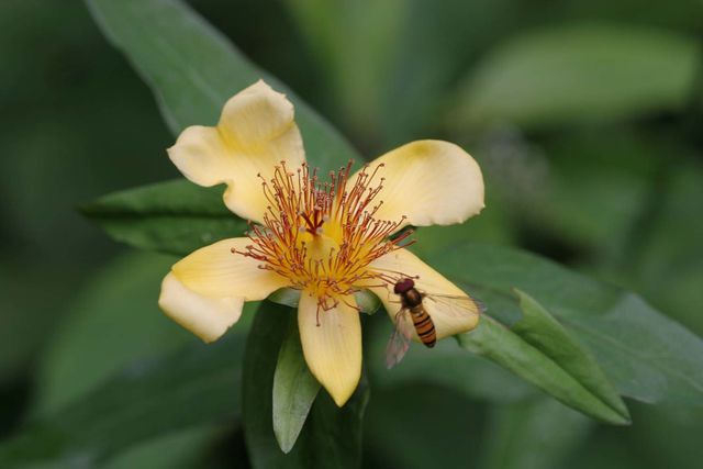6~8월에 줄기와 가지 끝의 취산꽃차례에 노란 꽃이 핀다. 꽃의 지름은 4~6cm로 비교적 크다. 꽃받침은 5장이며 길이가 1cm 정도다. 꽃잎은 낫 모양의 넓은 난형으로 길이 2.5~3.0cm다. 수술은 많으며 보통 5개의 뭉치를 이룬다. 암술대는 가운데 부분까지 5갈래로 갈라진다. 열매는 삭과이며 난형으로 길이 12~18mm다.