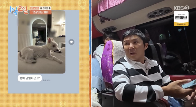 조세호는 “지금 문자 왔다. 우리 강아지인데 ‘형아 당일퇴근!?’이라고 왔다”고 말했다. 아내가 집에서 아내가 강아지 사진을 찍어 보낸 메시지를 자랑했다.