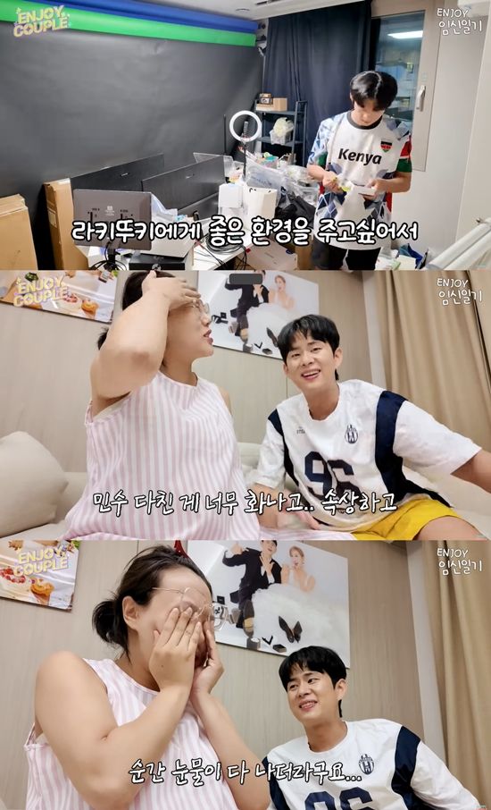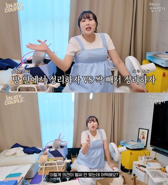 영상에서 임라라와 손민수는 곧 태어날 쌍둥이의 방을 만들고자 대청소를 시작했다. 흡사 '피난 장면'처럼 보이는 거실의 모습에 임라라는 "저는 방 안에서 정리하고 싶었고, 민수는 싹 빼서 정리하고 싶다고 하며 의견이 갈렸다. 지금 이렇게 5일째 살고 있다"며 울분을 토해냈다.