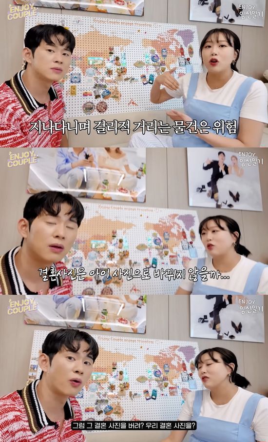 더하여 임라라는 지도를 "11년 간 연애하면서 함께한 여행지를 마그넷으로 붙이는 특별한 지도"라고 설명했다. 지도를 바라보던 임라라는 "너무 아끼는 우리의 추억이라 놔둘까 고민을 했다. 그렇지만 집에는 우리만 있는 게 아니라 아기가 나오면 위험할 수 있다고 충고를 들었다"고 밝히며 '예비 엄마'의 면모를 보였다.