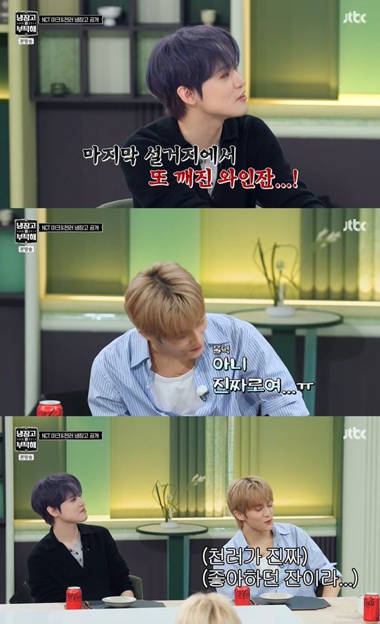 14일 방송된 JTBC '냉장고를 부탁해'에서는 NCT 멤버 천러와 마크의 냉장고가 공개됐다.