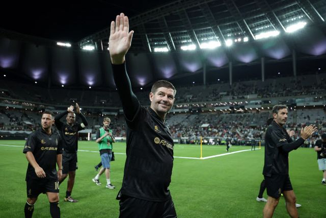 스티븐 제라드가 13일 서울월드컵경기장에서 2025 넥슨 아이콘매치 이벤트 경기가 끝난 뒤 팬들에게 손을 흔들고 있다. 사진=넥슨
