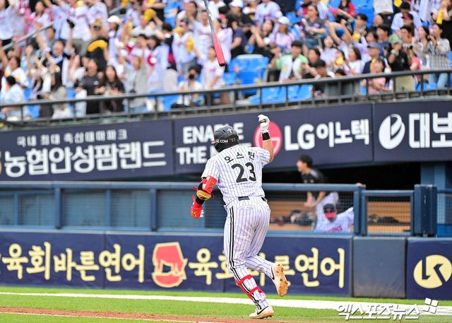 시작은 LG의 오스틴 딘이었다. 오스틴은 0:1로 뒤지고 있던 3회말 2사 1루 상황에서 KIA 선발투수 이의리의 초구를 잡아당기며 역전 투런포를 쏘아올렸다. 역전 투런의 짜릿함 덕분인지 오스틴은 타구를 한참 지켜보다 배트를 하늘 위로 던지며 LG 팬들의 환호를 이끌어냈다.