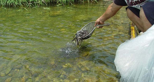 실뱀장어 방류 모습 / 연합뉴스