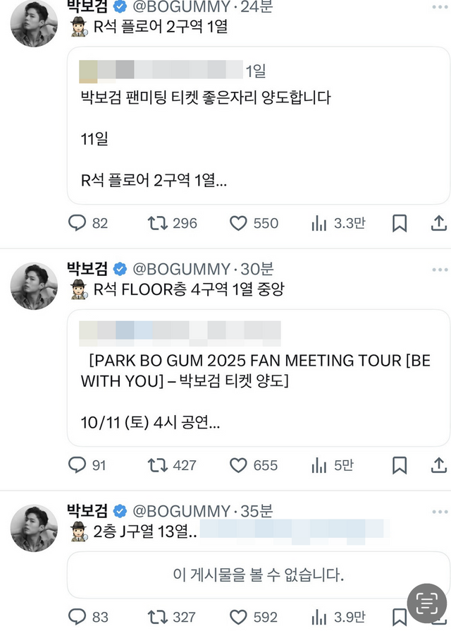 박보검은 "O구역 O열" 등의 좌석 정보를 언급하며 암표상의 자리를 직접 박제했다. 그의 직접적인 개입 이후 암표 판매글이 삭제되는 등 실질적인 변화도 이어졌다.