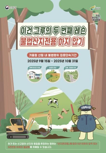 [와이뉴스] 여주시는 2025년 9월 15일부터 10월 31일까지 임산물 수확기를 맞아 가을철 임산물 불법 채취가 증가할 것으로 예상됨에 따라 산림 내 불법행위 집중단속 기간을 운영한다.