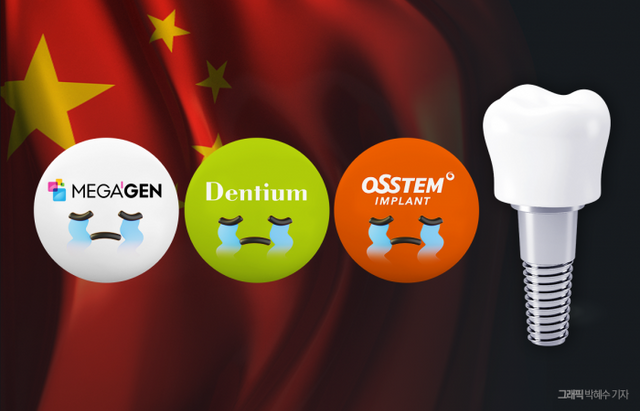 메가젠임플란트는 매출 1419억원, 영업이익 242억원을 기록해 전년 대비 각각 31.5%, 62.7% 줄었지만 덴티움보다 중국 시장 의존도가 낮아 상대적으로 충격은 덜했다.