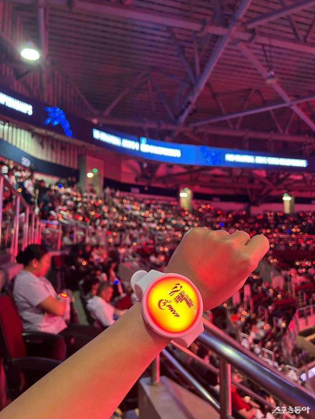 이날 필리핀 마닐라의 몰 오브 아시아 아레나(Mall Of Asia Arena)에서 열린 2025 세계남자배구선수권대회(이하 세계남자배구선수권대회) 개막식 관객들에는 하이브 자체 개발 응원밴드 1만개가 지급됐다.