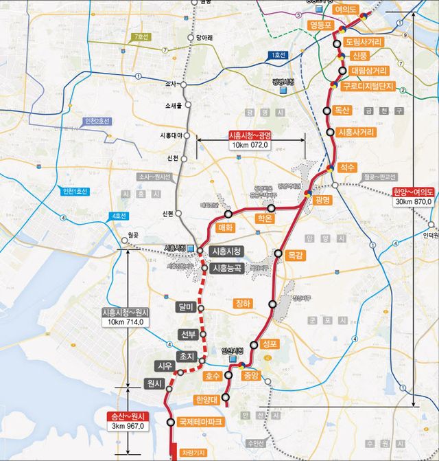 한편 신안산선은 서울 여의도에서 안양 석수역을 거쳐 광명역에서 분기해 시흥시청역 등을 지나 안산 국제테마파크로 가는 것과 광명역에서 시흥 목감역, 안산 중앙역, 한양대 에리카캠퍼스로 가는 노선으로 설계됐다. 2019년 착공했으나 올 4월 광명 구간에서 붕괴사고가 발생해 해당 구간의 공사가 중단됐다. 국토부는 붕괴 원인 조사를 위해 ‘광명 신안산선 붕괴사고 건설사고조사위원회’를 꾸려 이달까지 관련 활동을 벌였으나 최근 조사 기간을 내년 1월까지로 4개월 연장했다.
