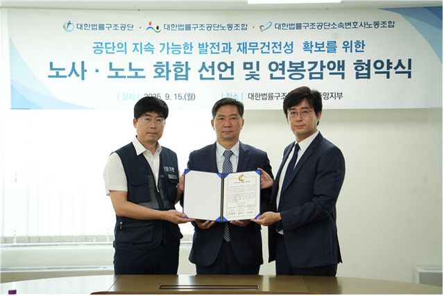 박종항 변호사 노동조합 위원장도 “이번 단체협약은 희생이 아닌 미래를 위한 투자”라며 “국민에게 더 나은 법률복지를 제공하는 과정이라는데 뜻을 모았다”고 덧붙였다.