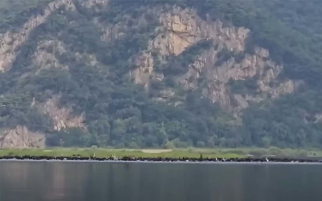 검은 띠처럼 보이는 게 민물 가마우지떼다. / G1 방송