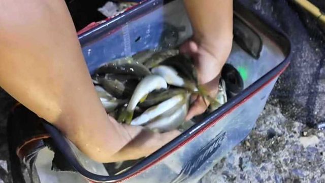 바글바글 떼로 잡힌 은어. / 유튜브 '채니아빠'