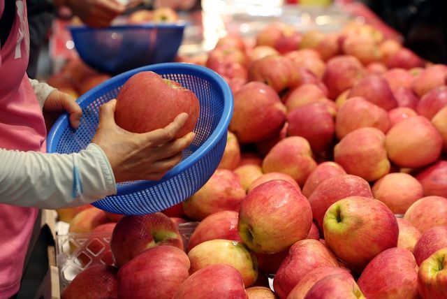 실제로 aT(한국농수산식품유통공사) 농산물유통정보에 따르면 추석을 24일 앞둔 지난 11일 홍로 사과 상품 10개 소매가격은 2만7110원으로 집계됐다. 이는 지난해 추석 24일 전(8월 24일)의 2만7711원보다 601원 저렴한 수치다.