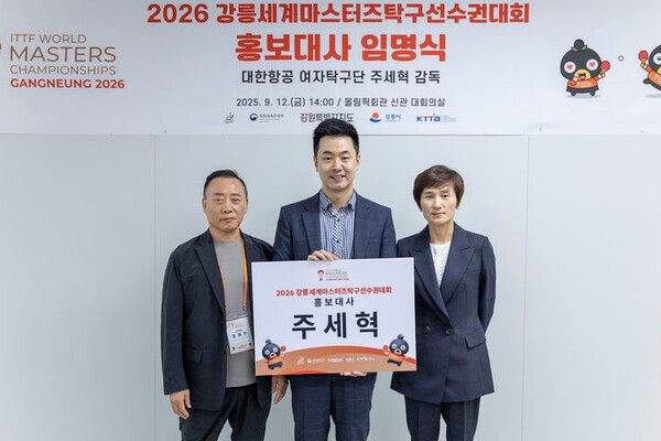 주세혁 대한항공 여자 탁구단 감독이 2026 강릉세계마스터즈탁구선수권대회 홍보대사로 위촉됐다.