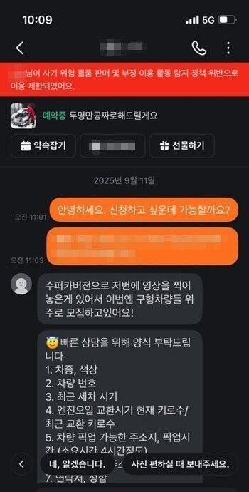 A씨는 “제가 안일했다. 당근마켓에 제 차 판매글도 올라왔지만, 클릭해 보니 이미 삭제돼 접근할 수 없었다”고 토로했다.