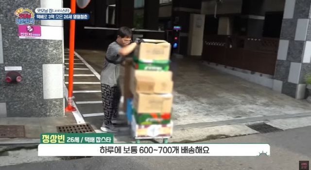 정씨는 “하루에 보통 600~700개 정도 배송한다”며 “한 달 기준 1만5000개~6000개 정도”라고 밝혔다. 동료 택배 기사들은 정씨를 두고 “한 달에 혼자 1만5000건이면 정말 토할 정도로 뛰어야 한다”고 칭찬을 아끼지 않았다.