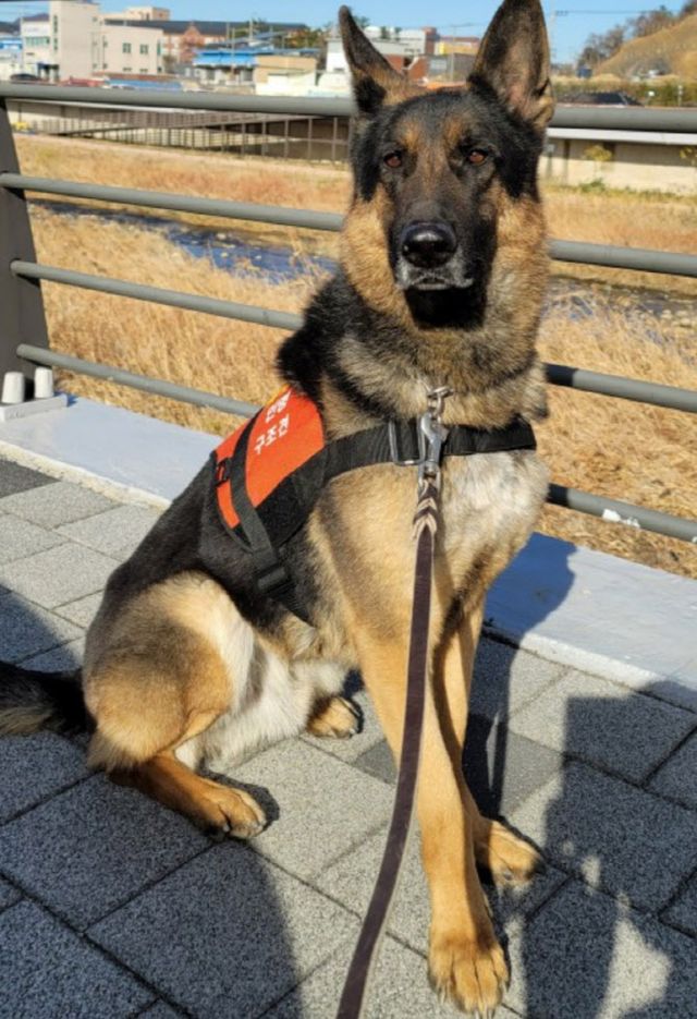8세 수컷 저먼 셰퍼드인 투리는 지난해 11월 산청군 치매 노인 실종 사고에서도 1시간 만에 실종자를 찾아내는 등 수색 활동에서 뛰어난 능력을 보인 구조견이다.