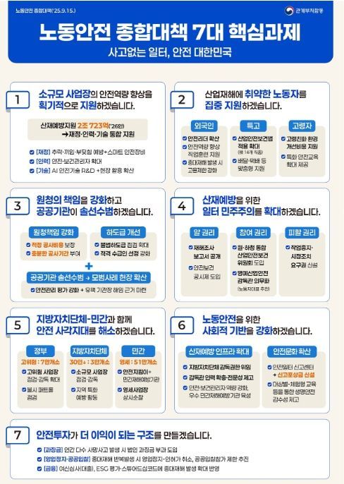 [와이뉴스] 고용노동부는 9월 15일 사고 없는 일터, 안전 대한민국을 위한 「노동안전 종합대책」을 발표했다.