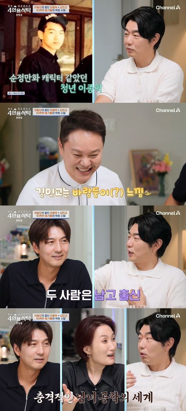 함께 식사를 하던 세 사람은 대학 시절을 떠올리며 대화를 나눴다. 이필모는 이종혁의 대학 시절에 대해 "정말 착한 모범생같은 느낌이었다. 순정 만화 느낌이었다"라고 전하더니, 김민교에 대해서는 "'현재 여자친구가 한 10번째쯤 되겠는데'라는 느낌이었다. 활발하고 여자 친구들하고도 되게 잘 어울렸었다"라고 폭로했다.
