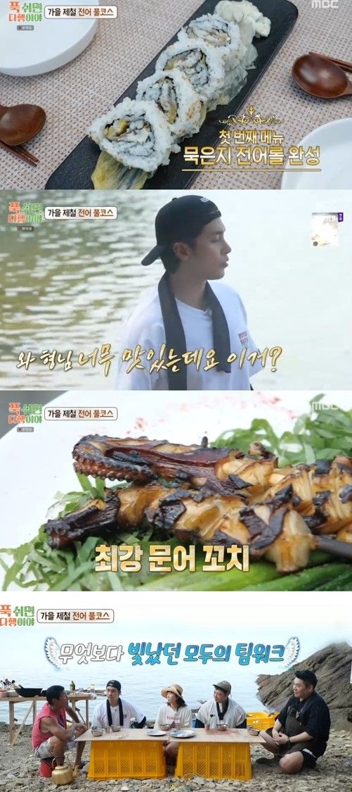 무인도 레스토랑 주방에는 메인 셰프 레이먼킴이 이들을 기다리고 있었다. 전어, 문어, 전복 등 다양한 해산물을 본 레이먼킴은 첫 번째 요리로 캘리포니아롤에서 영감을 받은 '무인도 묵은지 전어롤'을 만들기로 했다.