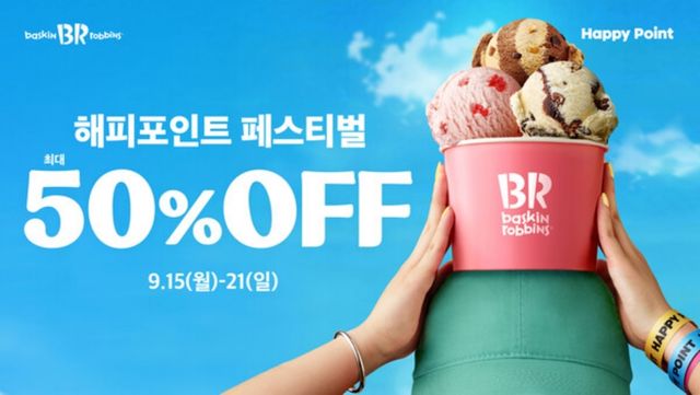 SPC 배스킨라빈스, 최대 50% 혜택 ‘해피포인트 페스티벌’ 프로모션 진행 / SPC 제공