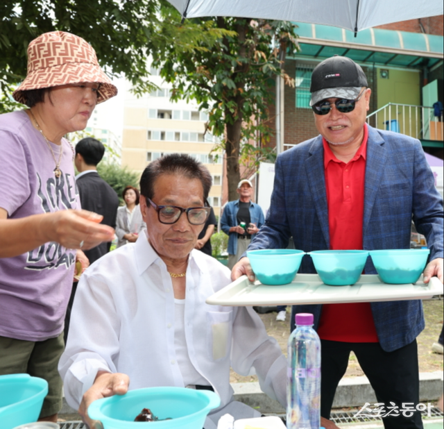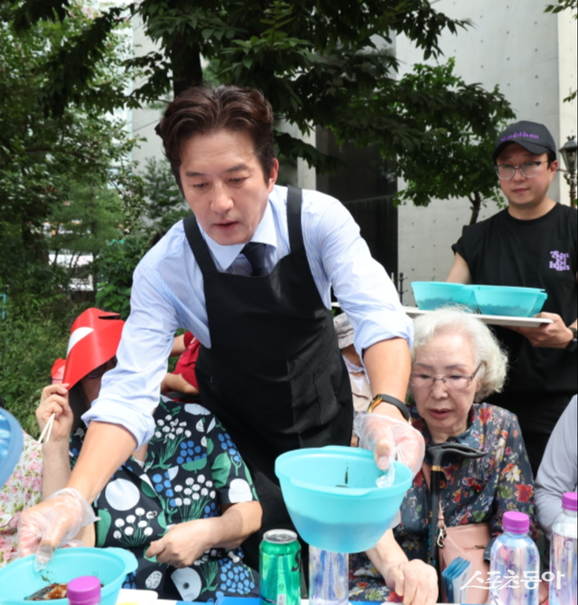 이들은 15일 오전 서울 마포 성산아파트 단지에서 어르신들께 짜장면 봉사 활동을 펼쳤다.