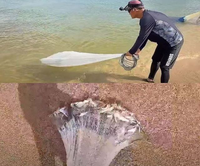 해안가에서 투망을 던지자 잡힌 고기떼들 / 유튜브, 메탈배스(바다투망) castnet fishing pesca