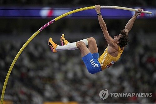 듀플랜티스가 15일 일본 도쿄 국립경기장에서 열린 2025 도쿄 육상세계선수권대회 3일차 남자 장대높이뛰기 결선 경기에서 6m30을 넘어 세계신기록을 작성했다.