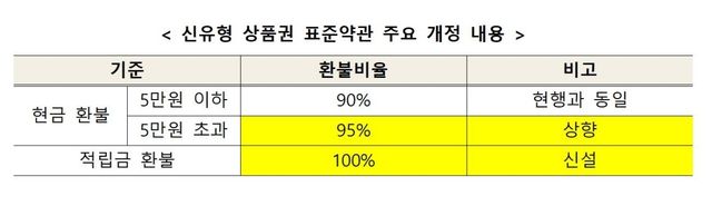 신유형 상품권 표준약관 주요 개정 내용 / 공정위 제공