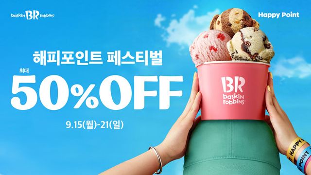 SPC 배스킨라빈스가 최대 50% 할인 혜택을 제공하는 '해피포인트 페스티벌'을 진행한다.