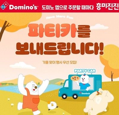 도미노피자가 10월 가을맞이 축제와 경찰·소방관 등 국가를 위해 헌신하는 이들을 위한 '파티카' 사연 모집을 진행한다.