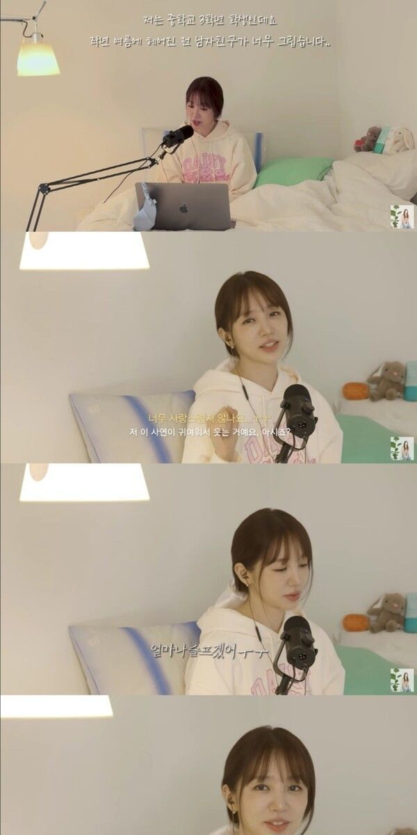 지난 15일 유튜브 채널 ‘윤은혜의 EUNHYELOGIN’에 올라온 영상에서 윤은혜는 팬들의 고민 사연을 읽고 답하는 시간을 가졌다. 이 중 자신을 중학교 3학년이라고 소개한 한 팬은 작년 여름에 헤어진 전 남자친구를 잊지 못하겠다며 힘든 마음을 털어놓았다.