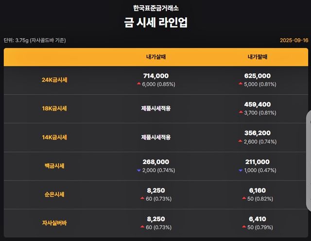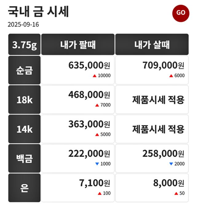 순금(24K) : 매입가 70만 9000원 / 매도가 63만 5000원