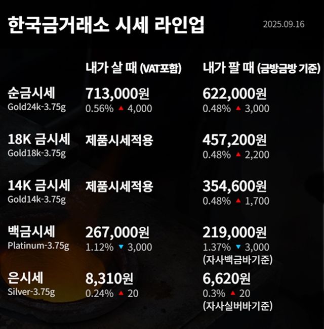 순금(24K) : 매입가 71만 3000원 / 매도가 62만 2000원