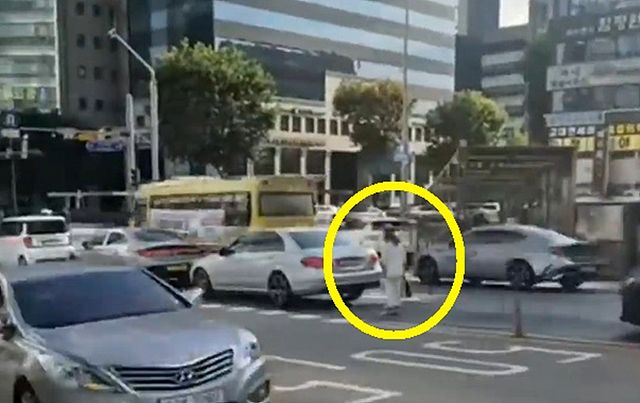 작성자 A씨에 따르면 영상은 지난 3일 서울 교대역 인근에서 촬영됐다. 영상 속 여성은 마치 자신이 차량인 것처럼 도로 위에서 차들과 함께 신호를 기다린 뒤, 좌회전 신호가 켜지자 자연스럽게 차들과 함께 이동했다.