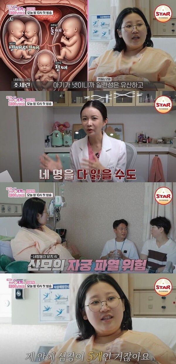 산모는 "기다리던 아기였는데 마냥 기뻐할 수만 없고 계속 우울하고 슬펐다. 제 안에 심장이 5개인 게 믿기지 않아서 더 선택하는 게 어려웠다"고 한다.